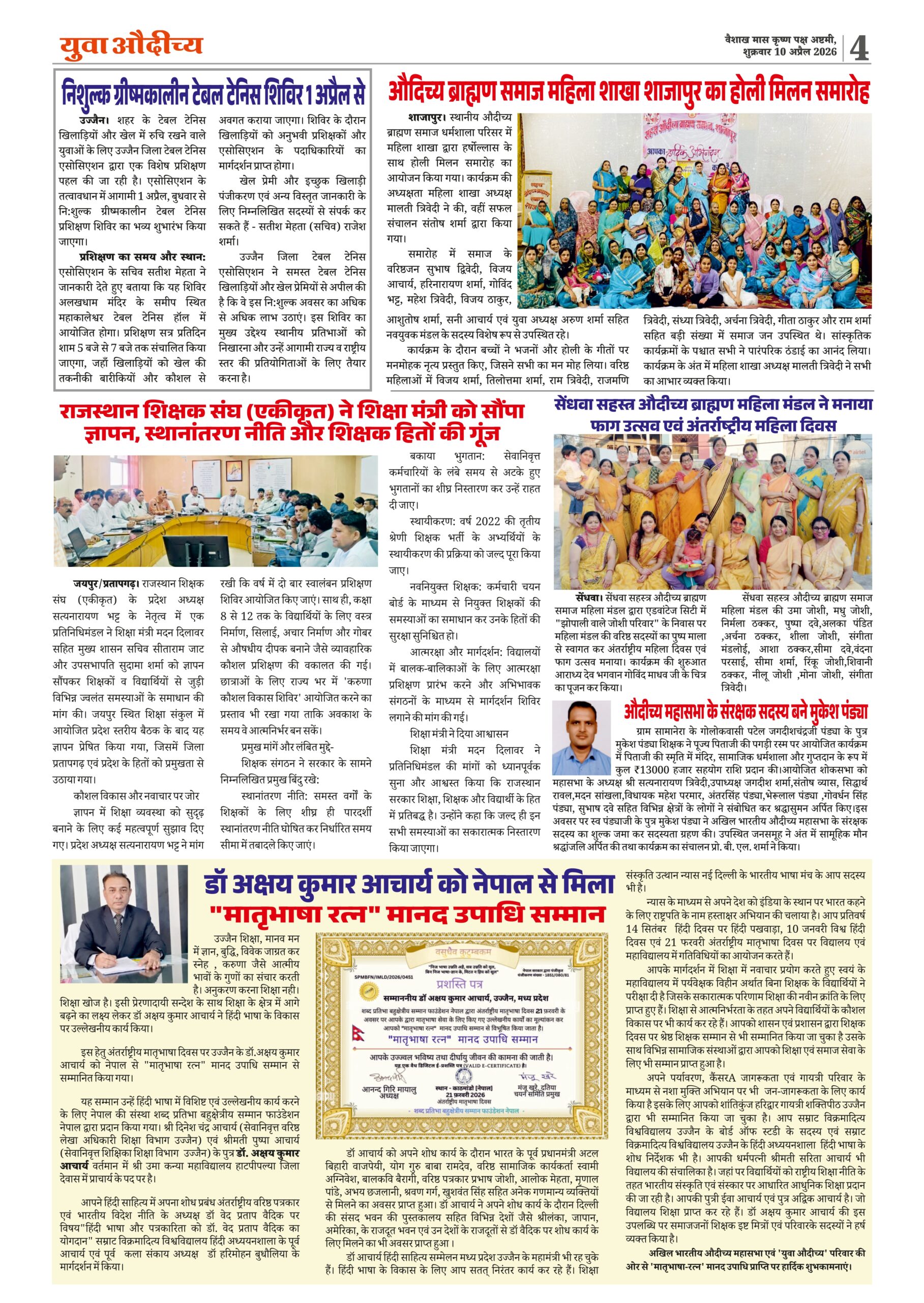 युवा औदीच्य (औदिच्य समाज का मासिक समाचार पत्र) माह – अप्रैल 2026 – वर्ष 4 अंक 7