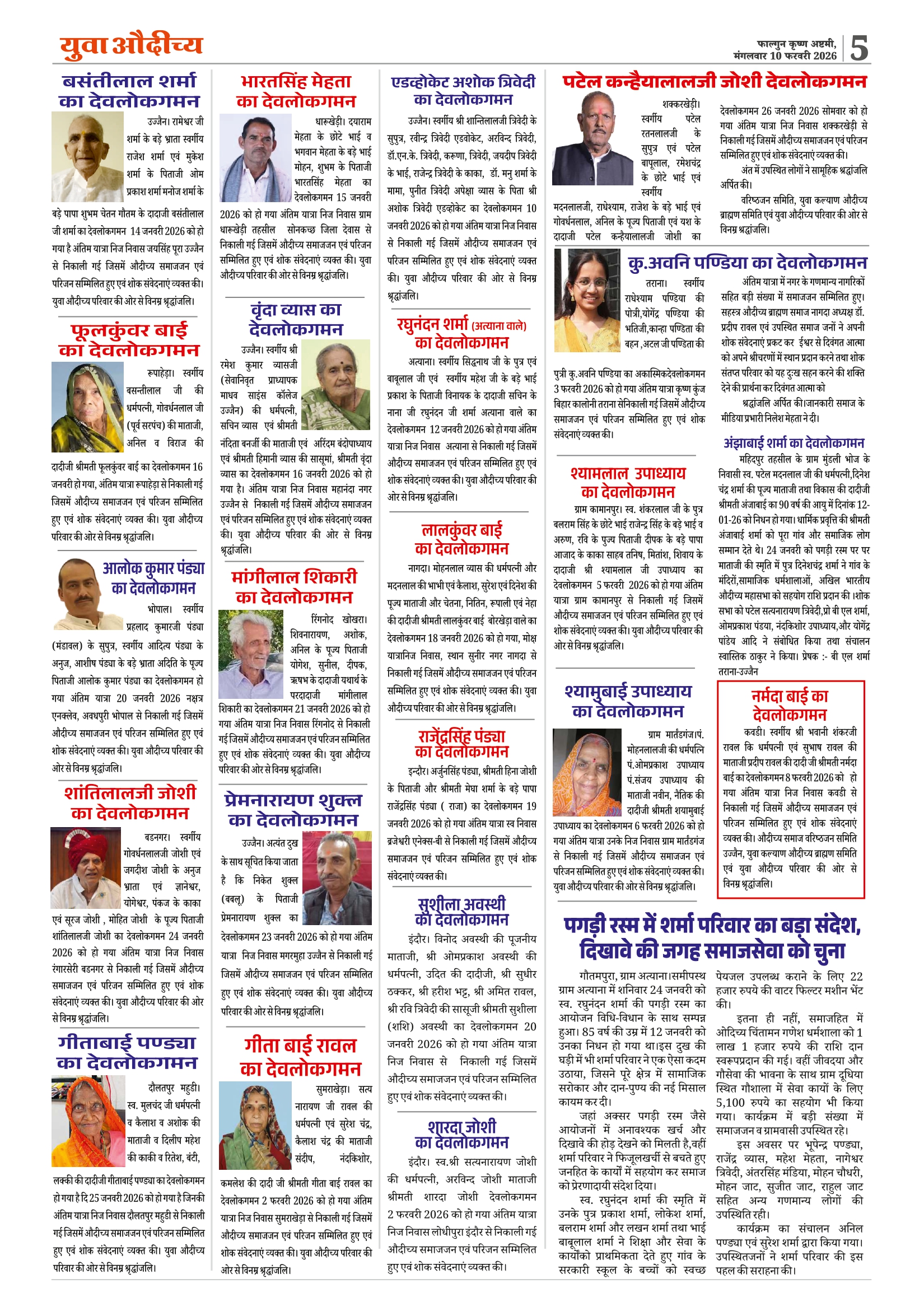 युवा औदीच्य (औदिच्य समाज का मासिक समाचार पत्र) माह – फ़रवरी 2026 वर्ष 4 अंक 5