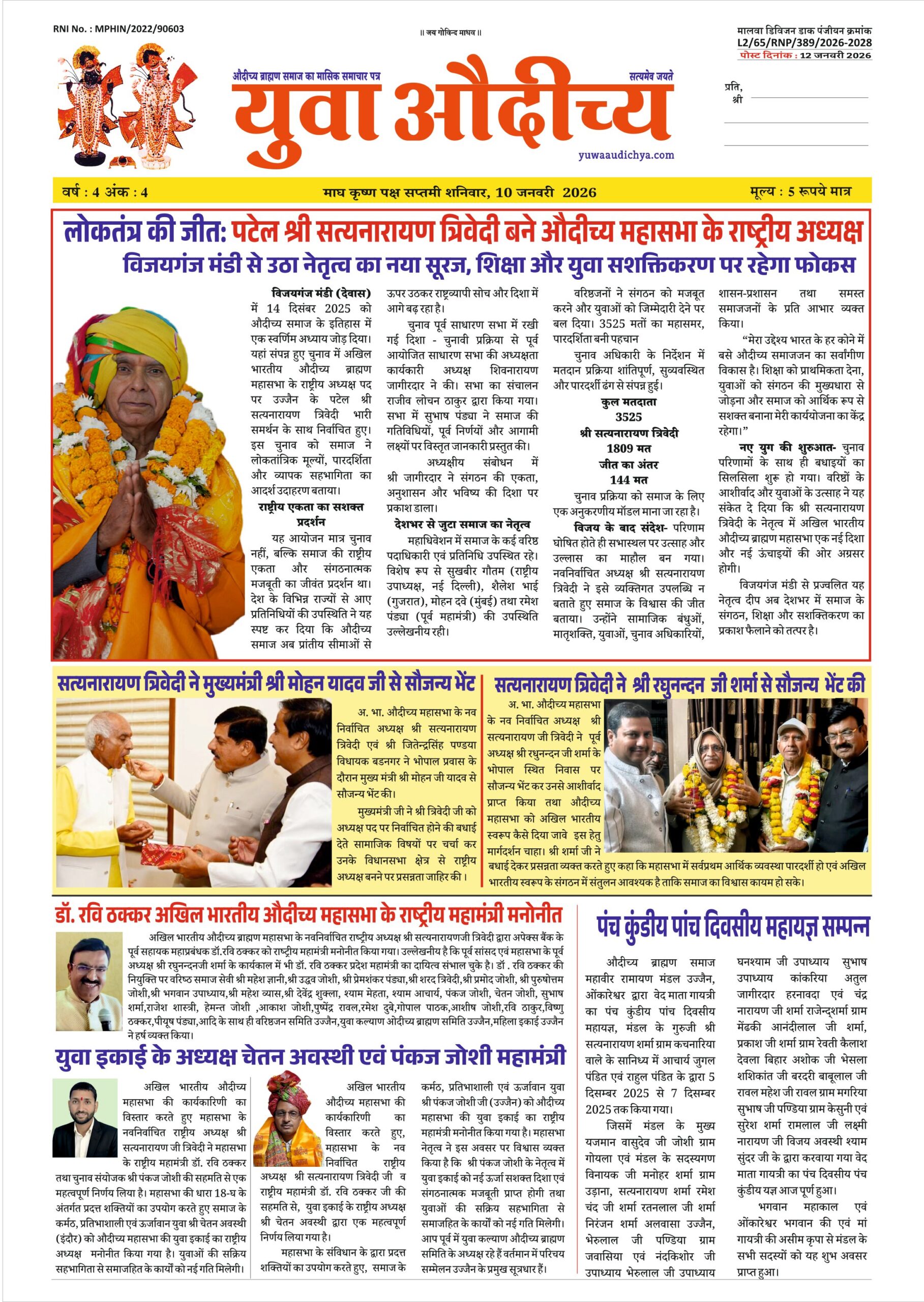 युवा औदीच्य (औदिच्य समाज का मासिक समाचार पत्र) माह – जनवरी 2026 वर्ष 4 अंक 4