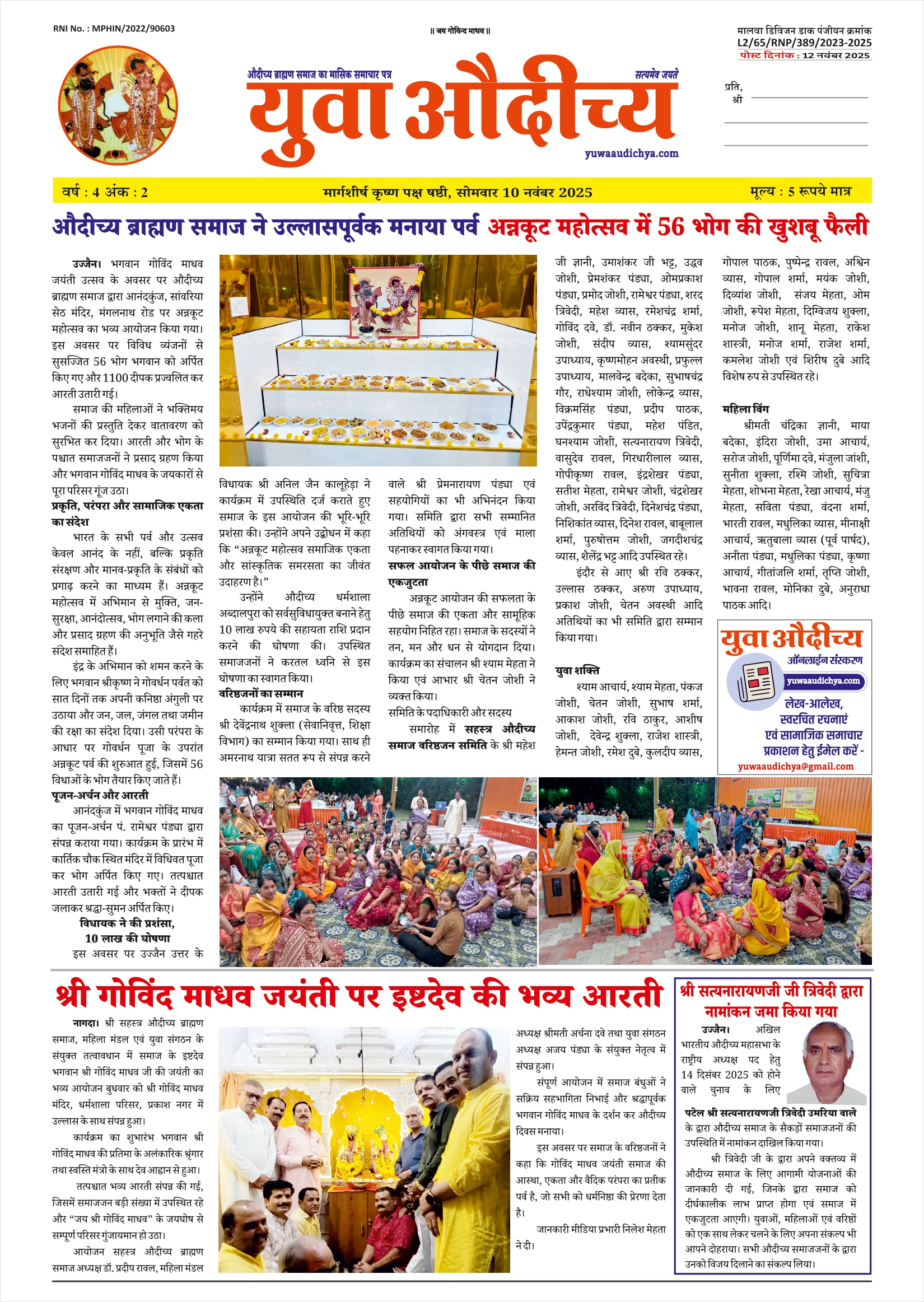 युवा औदीच्य (औदिच्य समाज का मासिक समाचार पत्र) नवम्बर माह 2025 वर्ष 4 अंक 2
