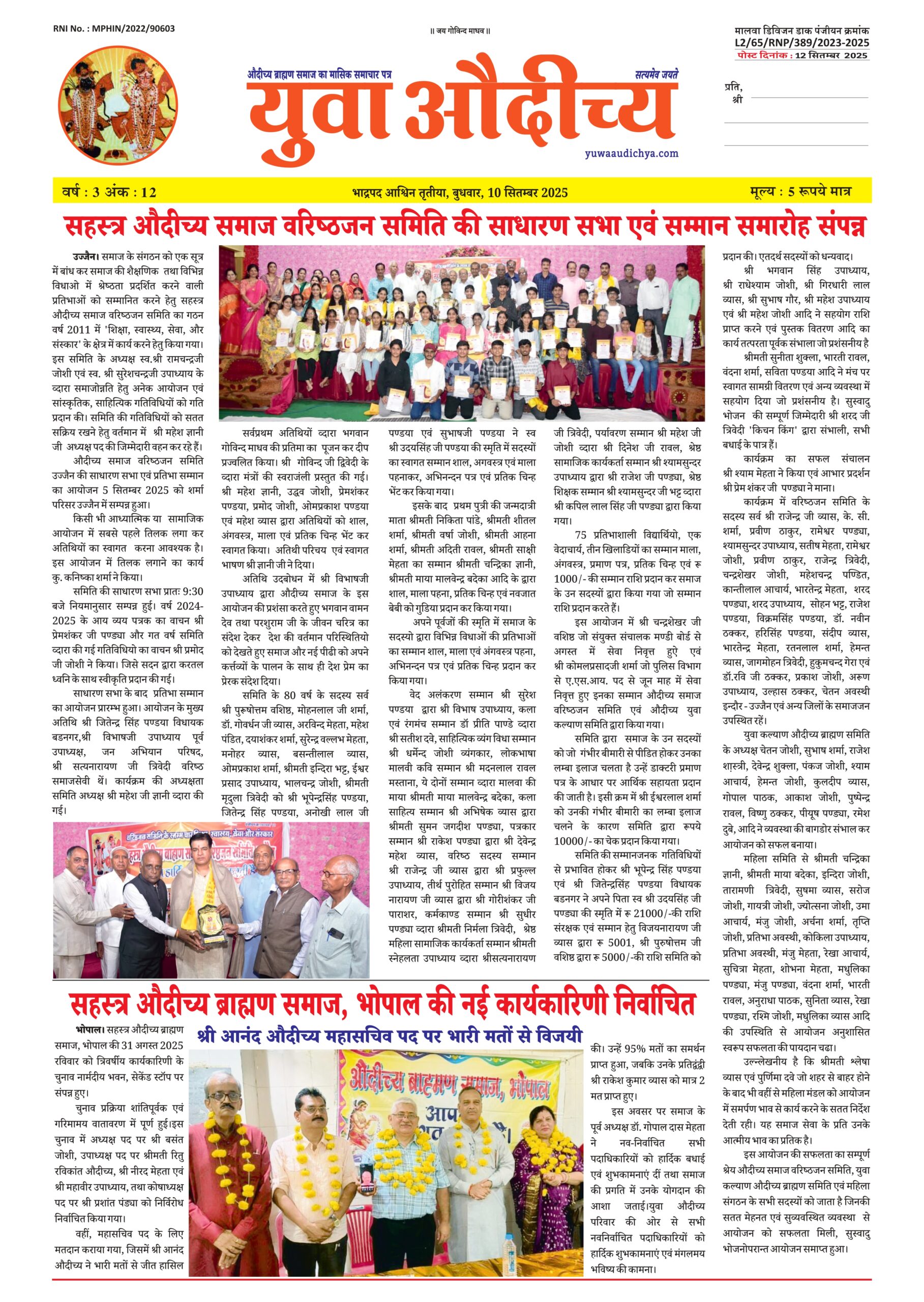 युवा औदीच्य माह – सितम्बर 2025 वर्ष 3 अंक 12